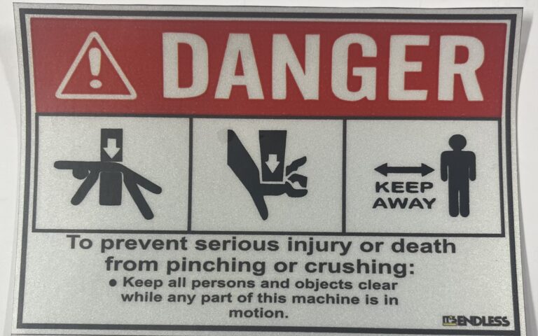 DANGER to prevent serious injury or death from pinching or crushing Decal